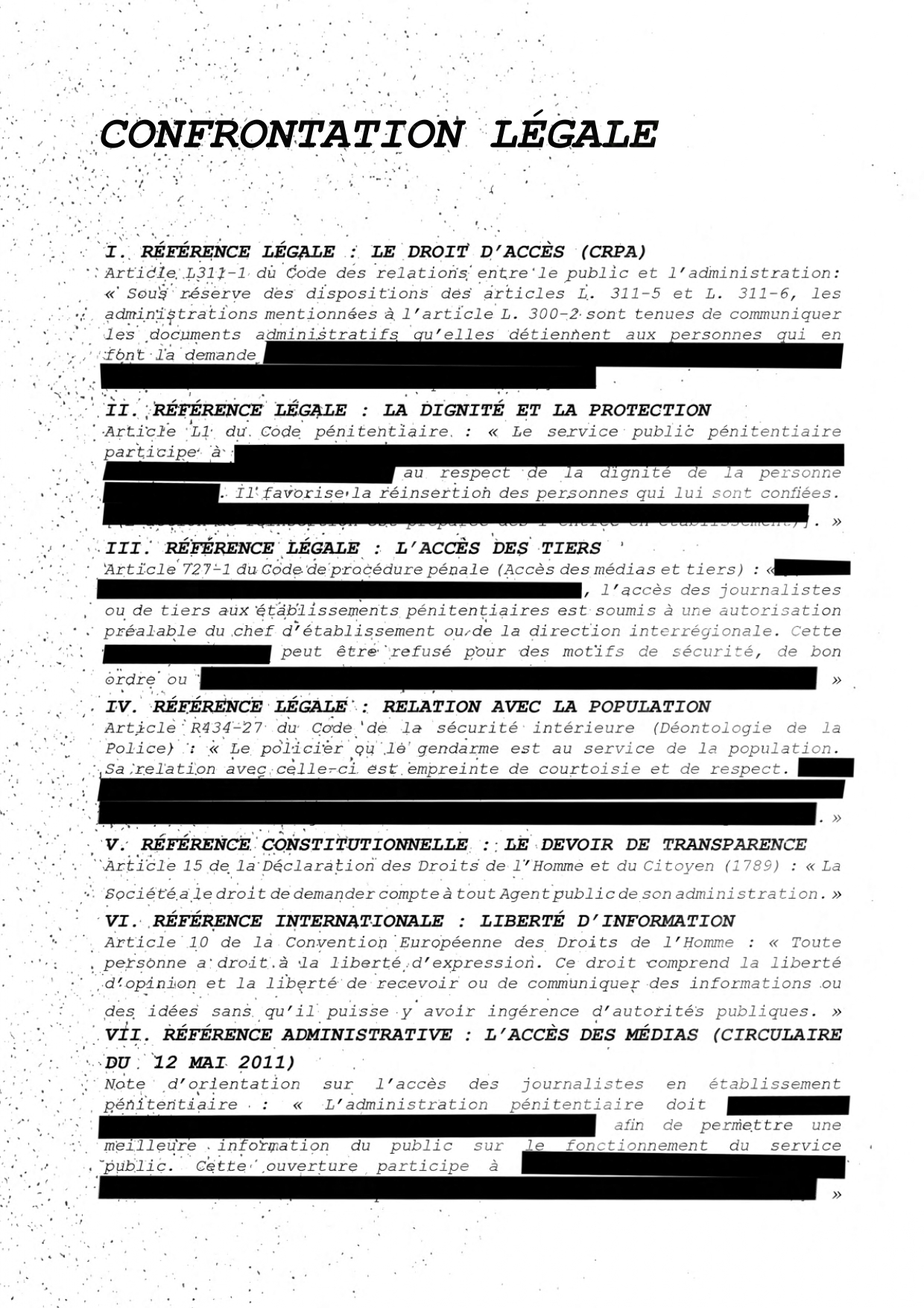 L'opacité policière trouve sa justification légale la plus puissante dans le Code de procédure pénale : le secret de l'enquête et de l'instruction. Si ce principe a été conçu pour protéger la présomption d'innocence et l'efficacité des investigations, il est aujourd'hui massivement utilisé comme un outil de verrouillage institutionnel. Reporters Sans Frontières (RSF) dénonce régulièrement l'impossibilité pour les journalistes d'être « embarqués » de manière indépendante avec les forces de l'ordre. Lorsqu'une équipe de télévision est autorisée à suivre une patrouille, c'est au prix d'une validation stricte du Service d'Information et de Communication de la Police Nationale (SICoP). Les reportages se transforment alors en opérations de communication validées par la place Beauvau. Dès qu'une affaire devient sensible ou qu'un journaliste indépendant tente de franchir les portes d'un commissariat pour documenter le traitement des gardes à vue ou les méthodes d'interrogatoire, le secret de l'enquête est immédiatement invoqué pour bloquer tout accès.