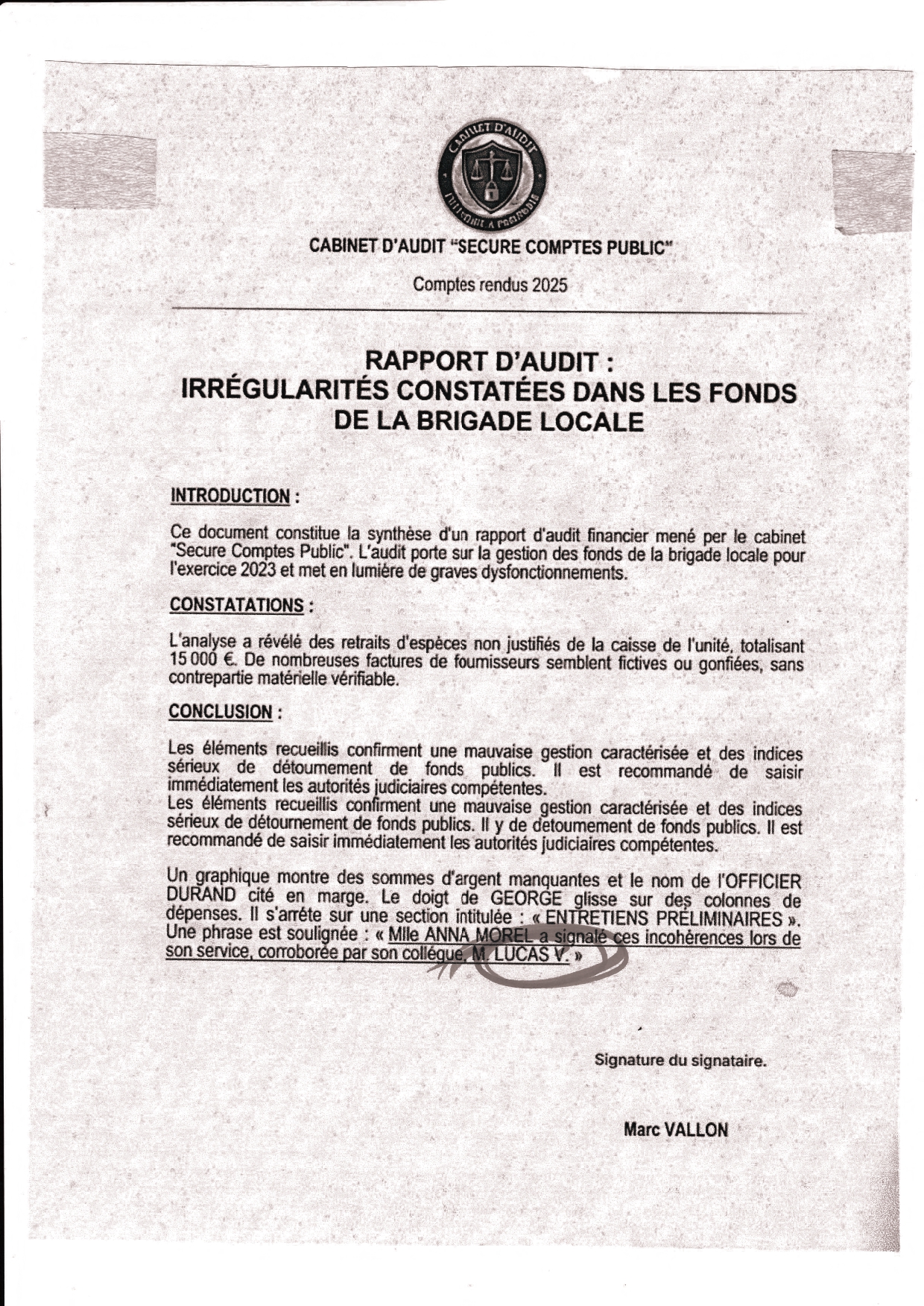 Le mot de passe est un terme de 7 lettres lié à la fermeture des institutions. Pour le trouver, allez interroger les suspects dans le REGISTRE DES PRISONNIERS (dans le meuble à tiroirs), ils ont des informations pour vous...