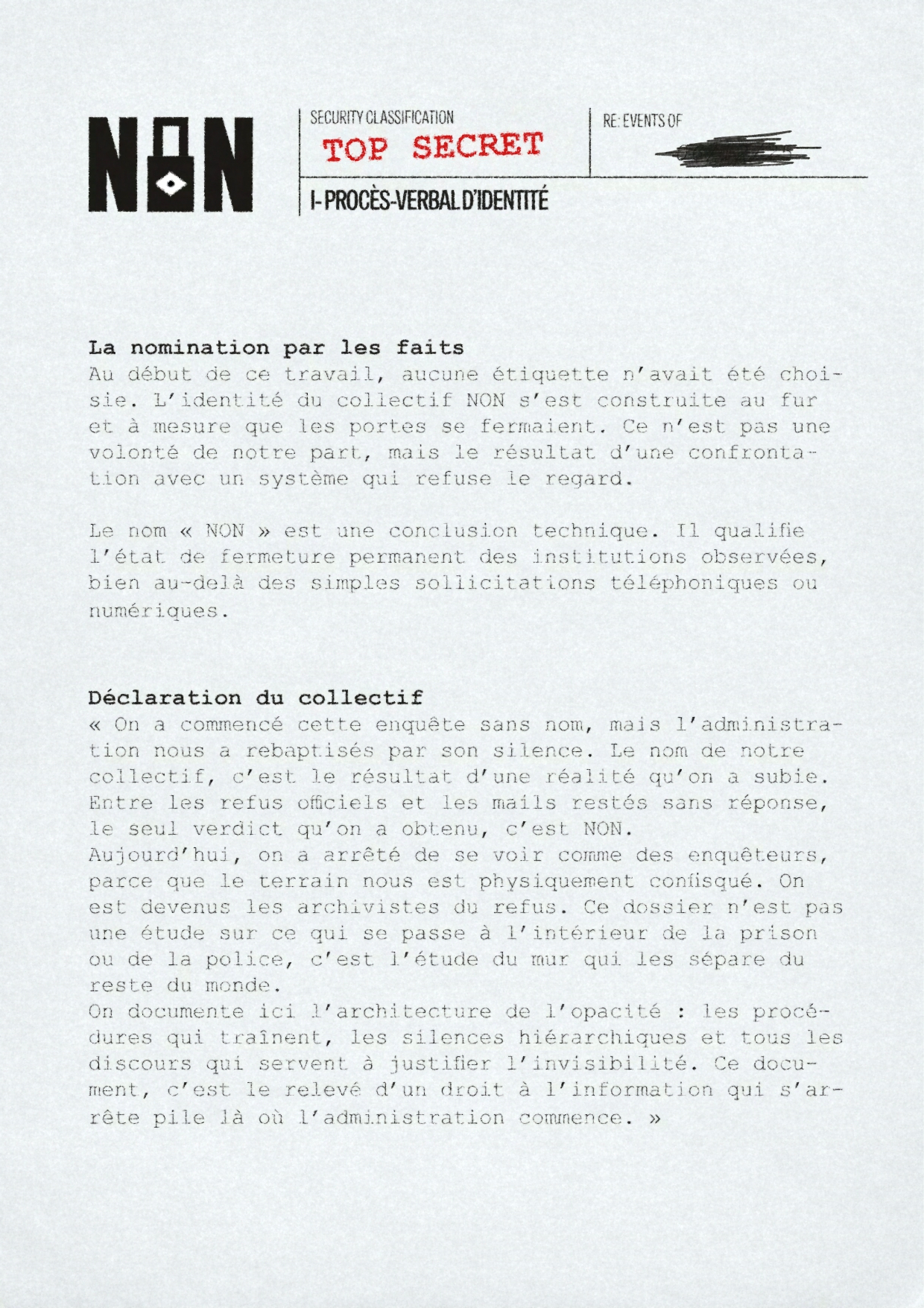 Contrairement à la prison, qui est par nature soustraite au regard, la police exerce l’essentiel de son mandat dans l'espace public. Pourtant, l’institution policière s’est érigée en véritable forteresse. Son inaccessibilité ne repose pas sur des murs de béton, mais sur un entrelacs de verrous juridiques, de réflexes corporatistes et de manœuvres d’intimidation qui visent à préserver le monopole du récit sécuritaire. Documenter l’action des forces de l’ordre de l’intérieur, ou même simplement sur le terrain, est devenu une épreuve de force permanente pour la presse et les chercheurs.