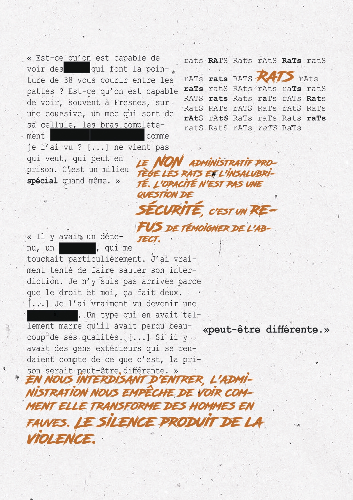 Le droit à l'image et le respect de la vie privée sont des principes légitimes, mais ils sont ici retournés pour protéger l'institution. Dans les rares documentaires autorisés, les visages des détenus doivent être floutés et leurs voix modifiées. Cet anonymat forcé déshumanise les personnes incarcérées et aseptise le récit. Aujourd'hui, le paradoxe est saisissant : les seules images brutes, non filtrées, documentant l'insalubrité (cafards, rats, cellules de 9m² partagées à trois avec des matelas au sol) ou les violences entre détenus proviennent de téléphones portables introduits en contrebande. Ces vidéos, souvent diffusées sur les réseaux sociaux, brisent le monopole narratif de l'État. Mais pour le détenu lanceur d'alerte, filmer la réalité de sa condition est un acte passible de sanctions disciplinaires immédiates et de poursuites pénales.